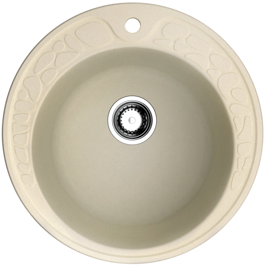 Эту модель легко узнать по ванильному цвету, который идеально подойдет к интерьерам в стиле прованс или классика. Ванильная мойка изготовлена из искусственного гранита толщиной 10 мм. Круглая форма удобна и для мытья посуды, и для подготовки овощей и фруктов к созданию любимых блюд. Размер мойки – 51 см в диаметре, а глубина – 207 мм, так что вы можете не опасаться брызг. Диаметр чаши составляет 39,5 см – вполне достаточно для любых задач. В комплект входит крепеж и донный клапан, так что вы можете приступить к установке сразу после того, как вам доставят выбранную модель.
