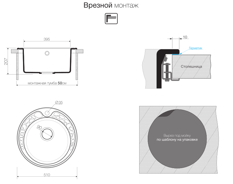 Размер мойки: Ø 510 мм