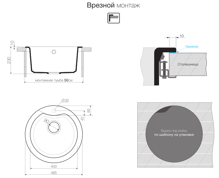 - Материал Искусственный гранит