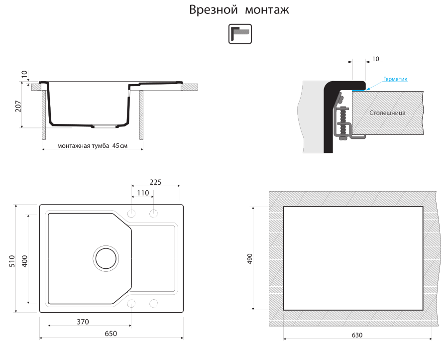 - Отверстие под смеситель Нет