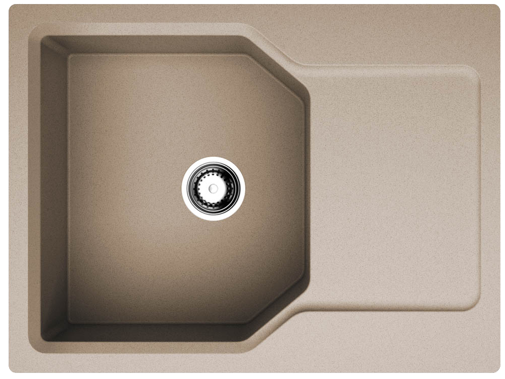 Раковина изготовлена из искусственного камня, который на 80% состоит из натуральной кварцевой крошки. Запатентованный материал называется ARTGRANIT и отличается высокой прочностью. Мойка стойко переносит любое термическое воздействие, так как в ходе производства ARTGRANIT подвергается нагреву до 280 градусов. В покрытии нет микропор, поэтому загрязнения на поверхности изделия не задерживаются. Уход за мойкой сводится к минимуму, а срок службы максимален. Уникальный бежевый оттенок получен благодаря красящим пигментам с вкраплениями.