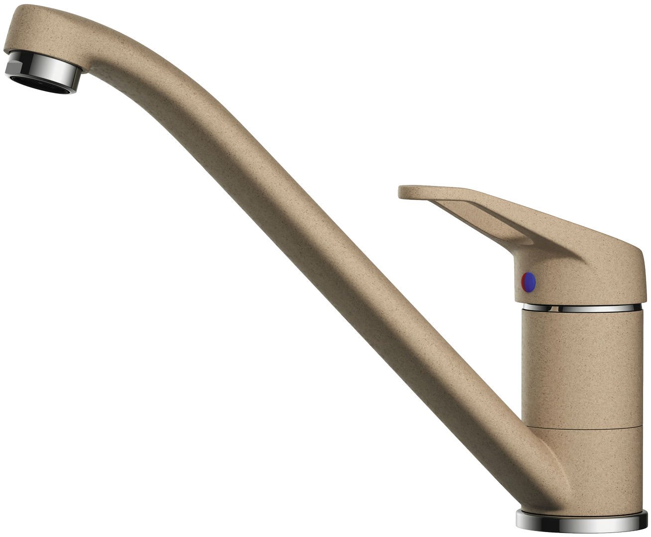Ищете необычный, но в то же время стильный смеситель, который точно подойдет под интерьер кухни? Представляем кран нежного цвета карамели – нейтральный оттенок удачно впишется в основную гамму помещения. Бежевый корпус имеет матовую текстуру благодаря специальному защитному покрытию, которое предупреждает появление царапин и обладает гидрофобными свойствами. Чистить смеситель будет несложно, ведь все, что от вас требуется – регулярно протирать его мягкой салфеткой, которая идет в комплекте.