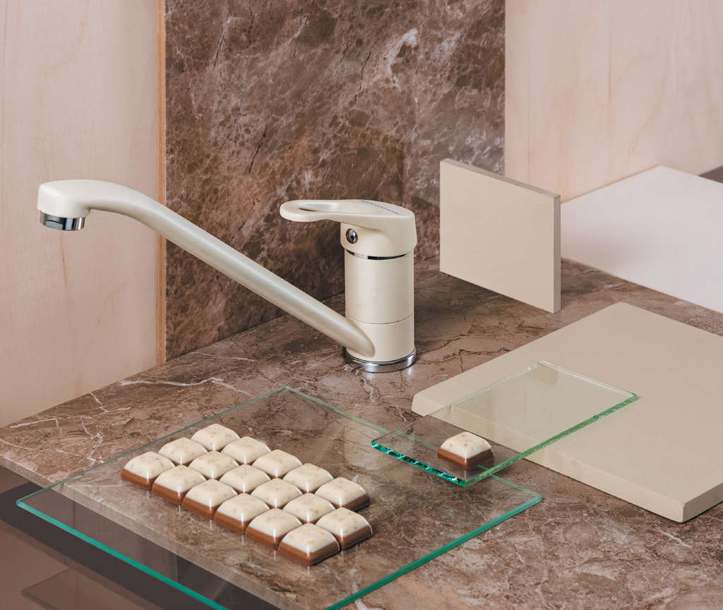 Для светлой раковины из искусственного гранита идеально подойдет смеситель, который будет иметь тот же оттенок. Для модели цвета шампань можно найти классический или современный смеситель, который в точности повторит цвет чаши. По форме он может быть как прямым, так и изогнутым, в зависимости от задумки дизайнера.