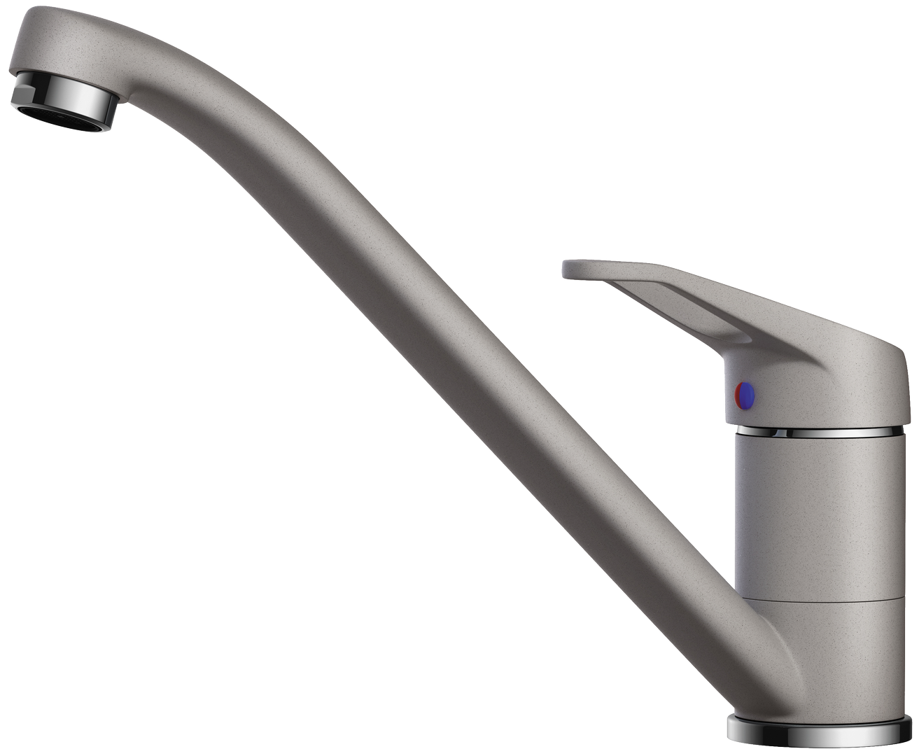 Корпус смесителя изготовлен из латуни с декоративным покрытием цвета Leningrad Grey. Благодаря ему он хорошо сочетается с мойкой из искусственного камня аналогичного оттенка из коллекции Solidity.