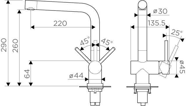 - Управление смесителем Рычаг