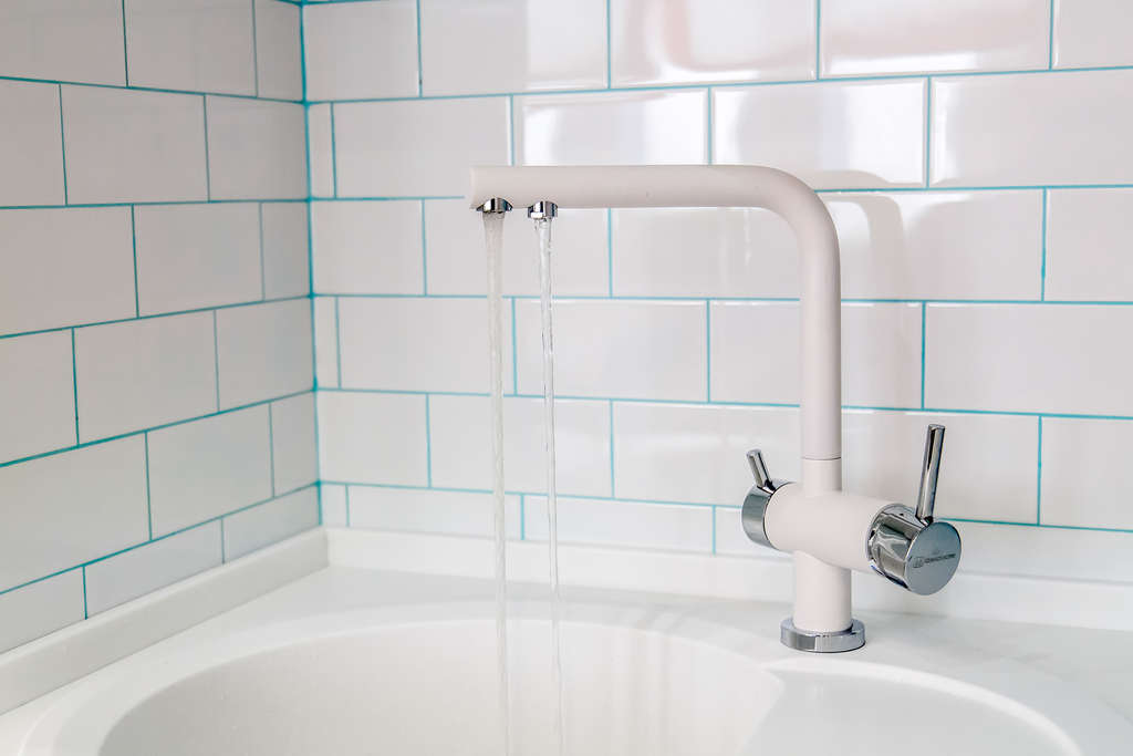 Смеситель выполнен из высококачественной латуни, не содержащей свинца, благодаря чему вода сохраняется чистой. Корпус имеет покрытие из искусственного камня, основание и ручки – хромированные. Правая рукоятка предназначена для водопроводной жидкости, левая – для фильтрованной. Точная регулировка потока выполняется керамическим картриджем, а за экономный расход отвечает пластиковый аэратор. Керамика и пластик не боятся воды и практически не изнашиваются, поэтому при правильной эксплуатации крана ни картридж, ни аэратор менять не придется.