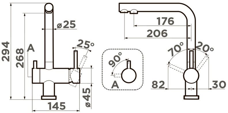 Фильтрованная вода подается по отдельной трубке и не смешивается с водопроводной водой