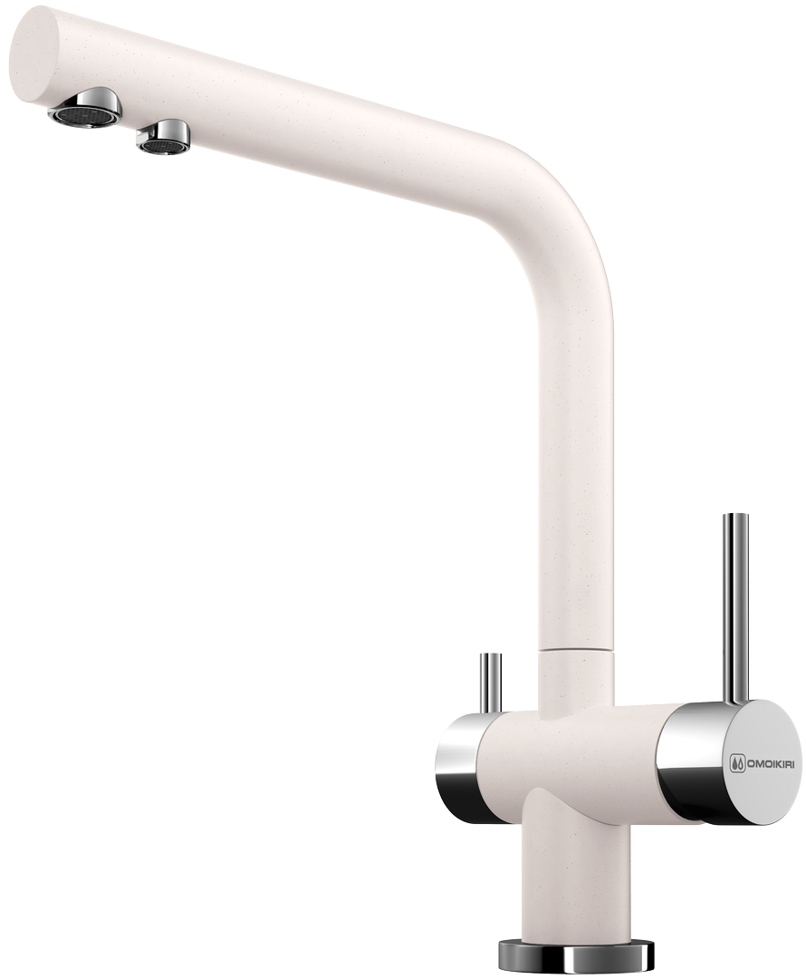 Смеситель выполнен в приятном цвете пастилы, что позволяет сочетать его с различными моделями моек из искусственного камня, представленными в ассортименте Omoikiri. В комплекте поставляется весь необходимый крепеж, патрубки и подробная инструкция.