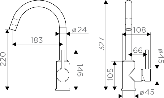 Это смеситель, который подходит для средней или большой мойки: высота корпуса составляет 327 мм. Модельстильная и удобная, так как дизайн продуман до мелочей. Кран отличается высоким изогнутым изливом, который можно поворачивать на 360 градусов, приложив небольшое усилие. Это удобная опция, если раковина состоит из двух чаш – поворачивайте излив, как вам удобно.