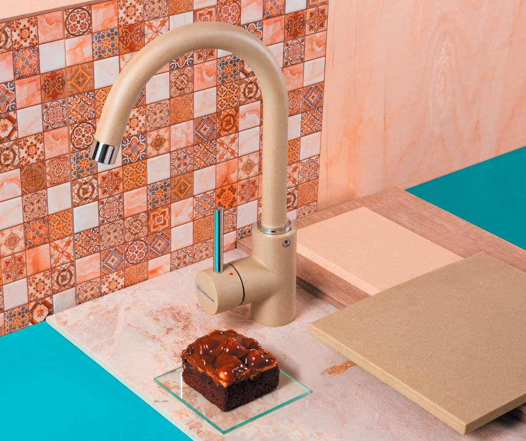 На этой станице представлен однорычажный смеситель, который хорошо сочетается с габаритными мойками. Корпус включает высокий объемный излив выгнутой формы, который проворачивается вокруг своей оси. Это удобное приспособление, если ваша раковина включает несколько чаш: можно направлять струю воды в любую из них. Представленная модель относится к серии практичных больших смесителей Shinagawa. Оттенок «Шампань» гармонично дополняет цветовую гамму любой кухни. Этот цвет еще и очень практичный, ведь на нем не так заметны мелкие загрязнения. Кроме того, они не задерживаются на матовой гладкой поверхности.
