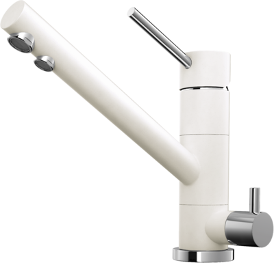 Многие хозяйки предпочитают устанавливать на кухне смесители светлых оттенков, и эта модель наверняка вызовет у них особый интерес. Красивый корпус цвета пастилы с небольшими серебристыми вставками и кранами смотрится очень нарядно. Вас наверняка порадует, что к модели легко подобрать мойку Omoikiri точно такого же оттенка – ее следует искать в коллекции Solidity.