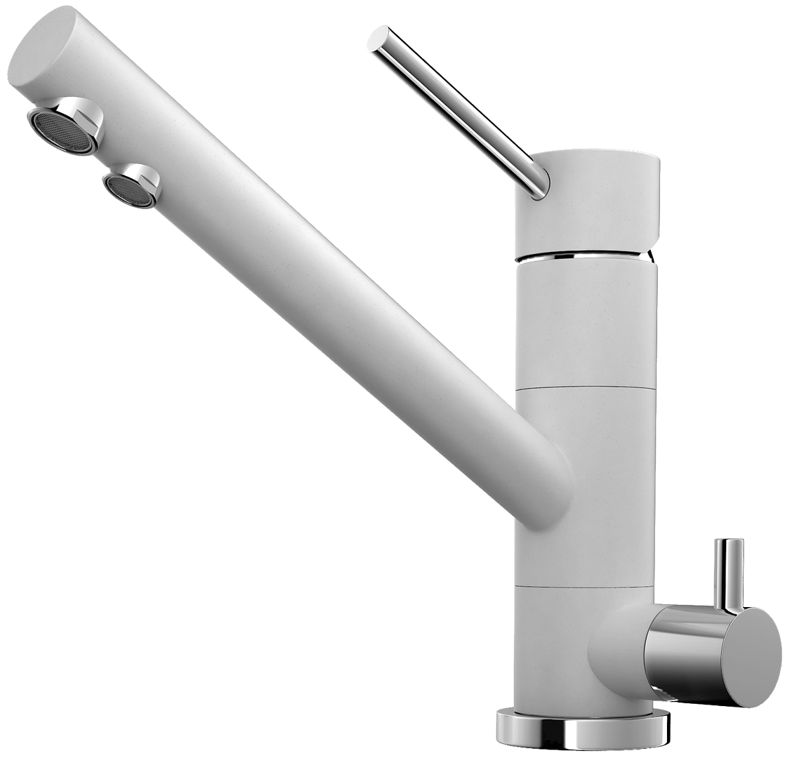 Смеситель изготовлен из высококачественной латуни, которая способна годами работать во влажных условиях, не изменяя своих первоначальных характеристик. Контактирующие с водой элементы латунных устройств не покрываются коррозией и выдерживают большие нагрузки. Большая часть корпуса покрыта искусственным гранитом белого цвета, на котором не остаются отпечатки пальцев. Серебристые рукоятки и основание гармонично вписываются в общий фон и делают модель еще более привлекательной.