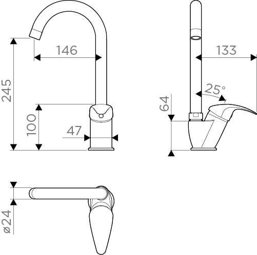 - Управление смесителем Рычаг