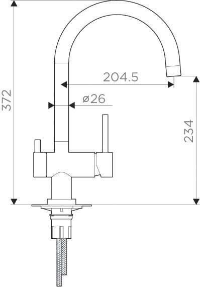 Излив высотой 234 мм хоть и не самый компактный, зато оснащен аэратором. Это решетчатая насадка, которая рассеивает струю – расходы воды снижаются почти вдвое. Аэратор выполняется из полимерного материала, который по прочности и надежности не уступает металлу, зато не ржавеет и не покрывается накипью. Вам не придется менять насадку: качество подачи воды будет неизменно высоким. С краном заказчик получает все комплектующие для монтажа и подробную инструкцию.