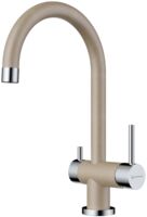Рычажное управление представлено двумя ручками: одна нужна для водопровода, а вторая – для подачи фильтрованной воды. Возможность подключения фильтра – одна из фирменных технологий японского производителя. По системе PURE LIFE® можно подключать фильтр любого бренда и модели, для этого в комплекте к смесителю прилагается специальный переходник – штуцер. Подается очищенная вода по отдельной трубке – никакого пересечения с системой водопровода.