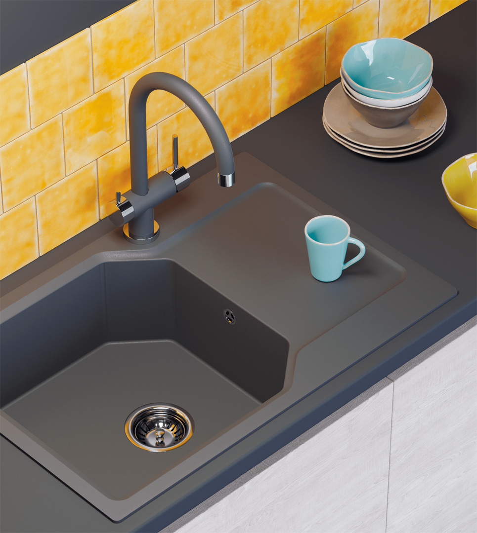 Изысканная современная модель с декоративным покрытием необычного, но очень приятного оттенка Leningrad grey, который напоминает осеннее небо Северной столицы. Покрытие, имитирующее текстуру гранита, позволяет смесителю составить гармоничный комплект с мойкой из искусственного камня аналогичного оттенка. Прочитав о дизайне смесителей в нашей статье, вы сможете узнать, к какому стилю интерьера лучше всего подойдет данная модель.