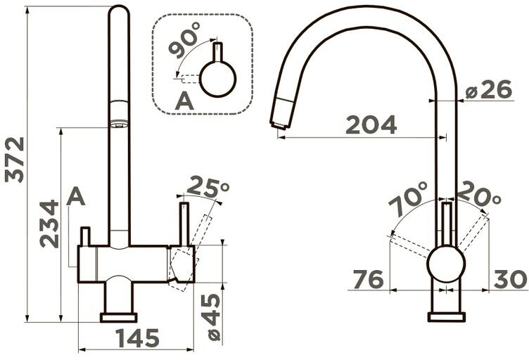Фильтрованная вода подается по отдельной трубке и не смешивается с водопроводной водой
